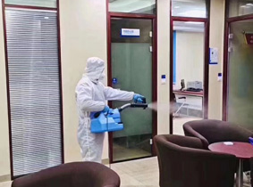 室內用超低式霧化機器對教室、辦公區、會議室、倉庫、茶水間、衛生間、走廊、電梯、扶手、地面、等區域進行全面滯留噴灑,霧化的顆粒僅有5-10微米,消毒劑的顆粒比較容易漂浮的空氣中,極易的均勻的附著在地面表層及桌面等整個區域(桌面上也可以噴,全覆蓋無死角)根據消毒滅菌的原理,能夠更好的達到消毒滅菌效果。等以上方式對人及環境安全,無刺激性氣味,不留痕跡。